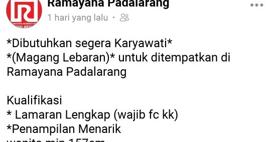 Lowongan Kerja Ramayana Cianjur / Pada lowongan kerja hari alfamart branch cianjur membuka rekrutmen kerja untuk posisi sebagai crew store dengan kualifikasi minimal adalah lulusan sma / smk.. Cianjur menerima daftar kunjungan harian dan melaksanakan sesuai dengan area yang ditugaskan. Barang kali ada diantara sobat tonggos.com yang sedang mencari loker terbaru cianjur minggu dan bulan ini. Lowongan kerja di cianjur juli 2021 temukan loker terbaru yang sesuai dengan lokasi, pendidikan, dan minat anda. Menyusun laporan survei untuk program rehab sesuai dengan kondisi. Karir|mayora indah 2021|info lowongan cianjur terbaru |daftar lowongan kerja terbaru via web/online.